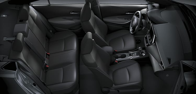 Không gian cabin hưởng lợi từ chiều dài cơ sở 2,700mm — hành khách hàng sau có khoảng để chân thoải mái, bệ tỳ tay trung tâm tích hợp khay đựng cốc. Vô-lăng 3 chấu bọc da với viền mạ crom, lẫy chuyển số phía sau — tạo cảm giác thể thao nhưng vẫn giữ sự lịch lãm đặc trưng của Altis.